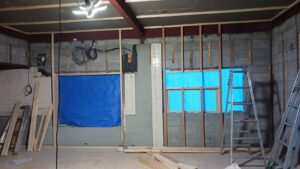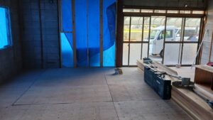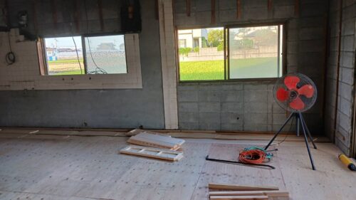 さらに窓も大きくするため、コンクリートブロックでできた壁を切って開口を広げます。