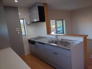大きなカウンターをのけて、以前よりも広々とした空間になりました。使い勝手もアップして、料理が楽しくなりそうです。