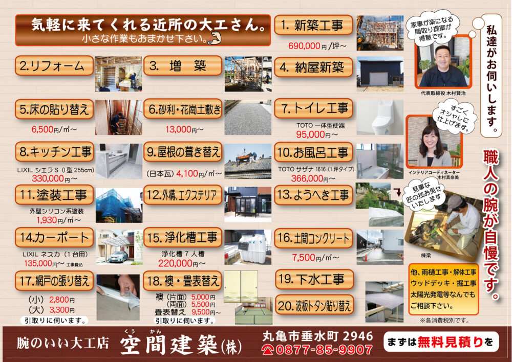 工事費用を抑える内容のご提案は常時しておりますが、さらに!気合のお値引きをいたしますので、この機会に是非お見積りだけでもお問合せください。