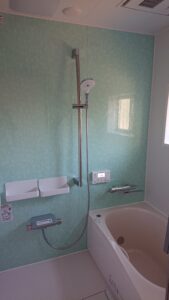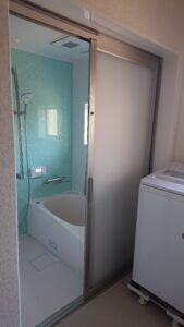 「思っていたより小さい…」とならないよう、これくらいのサイズになりますよ、と実際のお風呂場でしっかり確認しながら打ち合わせを重ねました。