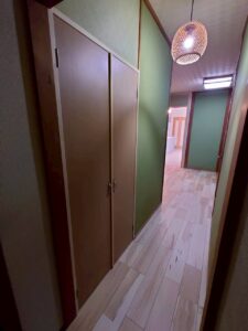 抜かない方がいい柱は残し、収納の柱としてわからないところで活かすことで、間取りを美しく保ちました。