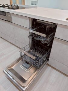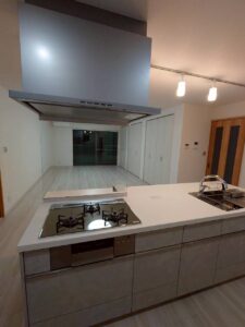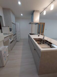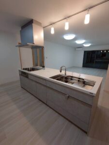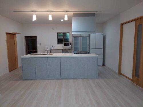 キッチンは真ん中に配置し、左右どちらからでも入って使える、使い勝手の良いレイアウトにしています。