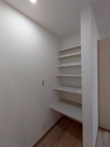 各部屋に収納をしっかり取り、棚はお客様と一緒に細かいところまで相談しながら製作。