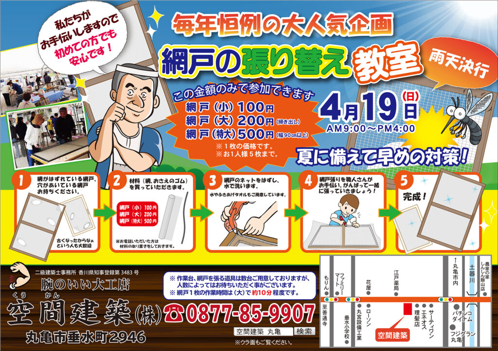 今年も開催決定! 大人気企画、網戸の貼り替え教室を開催いたします。 開催... -